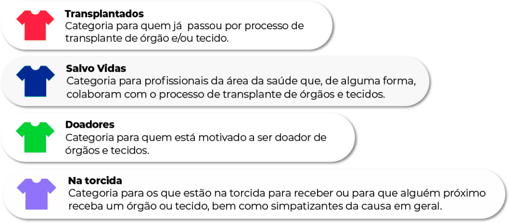 Está lista engloba uma variedade de modalidades que correspondem aos diferentes tipos de órgãos necessários para transplantes, como rins, figado, coração, pulmão, pâncreas e outros.